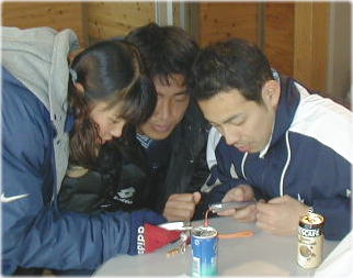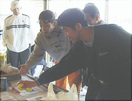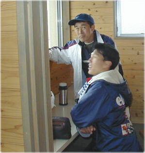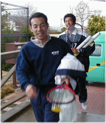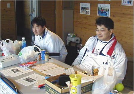 ![]() 決勝が終わって帰ってくる二人!! 前・勝った勝った、おいが一番。〔石崎〕 後・あ〜負けてしもうた〔松尾〕 |
